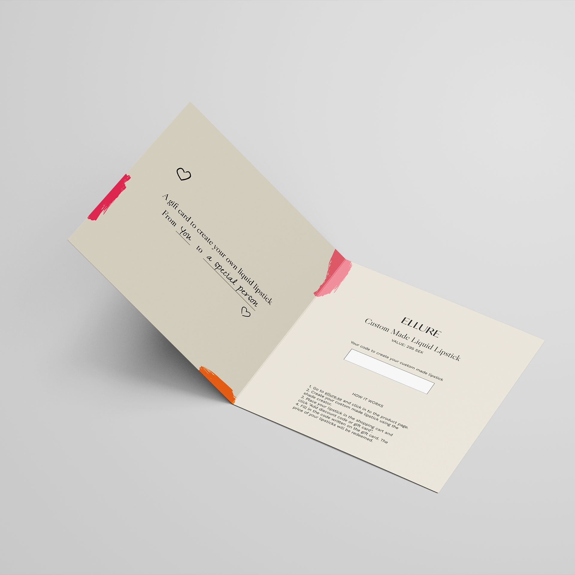 Your giftcard will contain a code that can be used on ellure.se to redeem the price of a custom lipstick. First, use our shade creator to design your perfect shade and add this lipstick to your shopping cart. Then, before you check out, add the giftcard code to the shopping cart as well to cancel out the price. Lastly, follow the checkout process so we can handle your order!